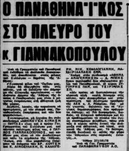 Τη επόμενη μέρα της παραπάνω διαφημιστικής καταχώρησης η «Αθλητική Ηχώ» δημοσίευσε ανακοίνωση της Γραμματείας του ερασιτέχνη Παναθηναϊκού, στην οποία καλούνταν οι Αθηναίοι ψηφοφόροι να στηρίξουν υποψήφιους προερχόμενοι από τον Παναθηναϊκό στις εκλογές της επόμενης μέρας.