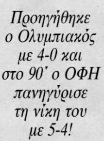Γνωρίζατε ότι… ο ΟΦΗ έκανε το 1990 εναντίον του Ολυμπιακού την μεγαλύτερη ανατροπή στην ιστορία του Ελληνικού ποδοσφαίρου;