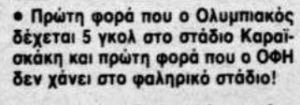 Το 1990 οι Κρητικοί ενώ έχαναν από τους «ερυθρόλευκους» στο Καραϊσκάκη με 4-0 στο 50ο λεπτό, κατάφεραν στο τέλος του αγώνα να φύγουν με την νίκη με το εκπληκτικό 4-5!