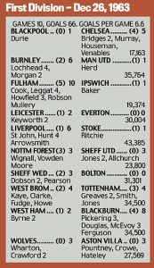 Μόνο η Μπόλτον και η Έβερτον δεν σκόραραν στην “boxing day” του 1963! Αν και αυτές οι δύο ομάδες συμμετείχαν στο «πάρτι» που είχε στηθεί στα 10 Αγγλικά γήπεδα, το αποτέλεσμα των 66 τερμάτων θα ήταν μεγαλύτερο.