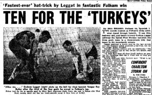 Υπαίτιος γι΄ αυτό ο Σκωτσέζος διεθνής Graham Leggat ο οποίος στο 18ο λεπτό, στο 19ο και στο 20ο λεπτό πέτυχε το πιο γρήγορο «χατ-τρικ» που είχε σημειωθεί ποτέ στην πρώτη κατηγορία του Αγγλικού πρωταθλήματος.